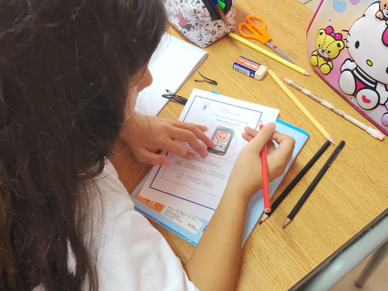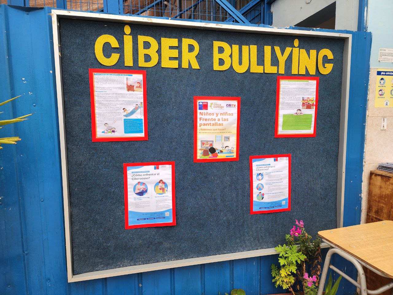 Para reforzar este compromiso, los estudiantes del primer ciclo pintaron un afiche donde expresaron su compromiso con la prevención del ciberacoso, mientras que los alumnos del segundo ciclo realizaron afiches con recortes en cartulina. Como complemento a estas actividades, el área de Convivencia Escolar instaló diversos murales en nuestro colegio, reafirmando el compromiso de toda la comunidad educativa con la erradicación de esta problemática.