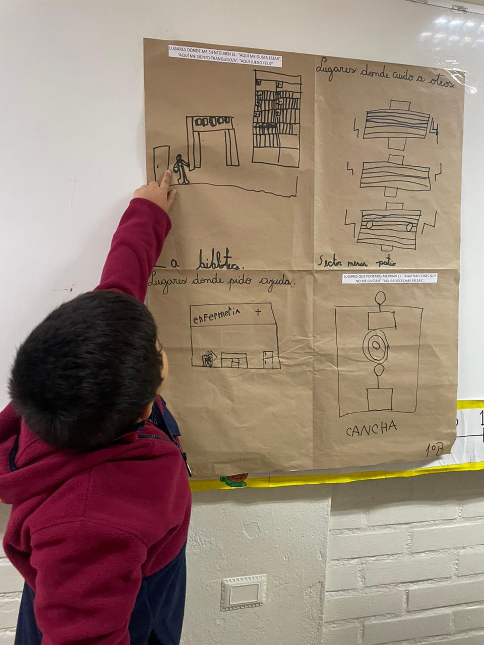 La actividad se llevó a cabo durante el primer bloque de clases, adaptando las dinámicas según el nivel educativo. Para los cursos de 1° a 3° básico, las y los estudiantes trabajaron con imágenes y tarjetas que representaban acciones de cuidado y situaciones de conflicto. A partir de estas, compartieron experiencias y crearon un “papelógrafo del cuidado”, en el que identificaron lugares del colegio donde se sienten seguros, piden ayuda o consideran que es necesario mejorar.