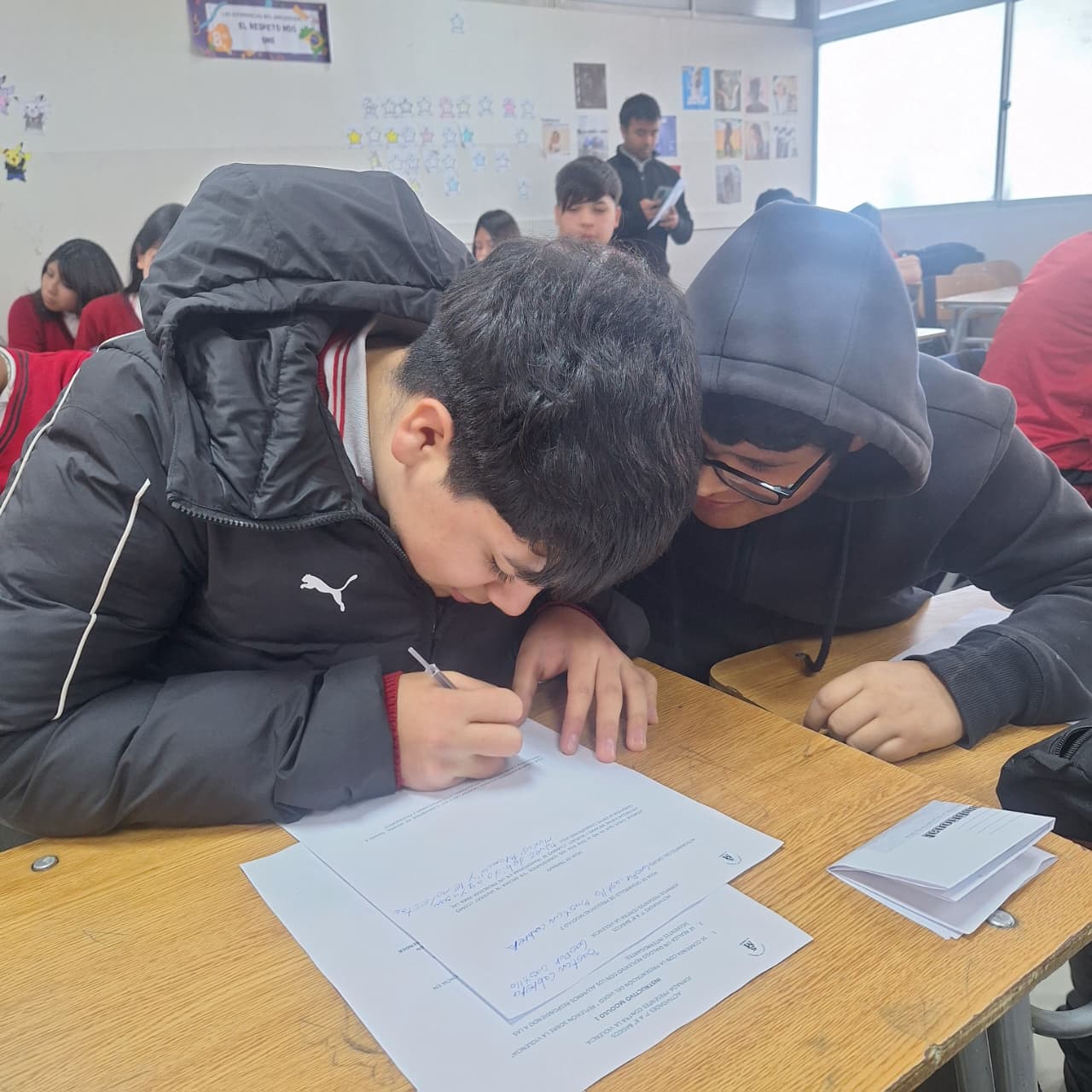 Por su parte, los cursos de 7° y 8° básico participaron en actividades de análisis y debate en torno a las distintas formas de violencia. A través de la observación de casos y el trabajo en equipo, reflexionaron sobre cómo reconocer situaciones de agresión, qué factores externos pueden influir en la convivencia escolar y qué acciones colectivas pueden aportar a la prevención de la violencia.