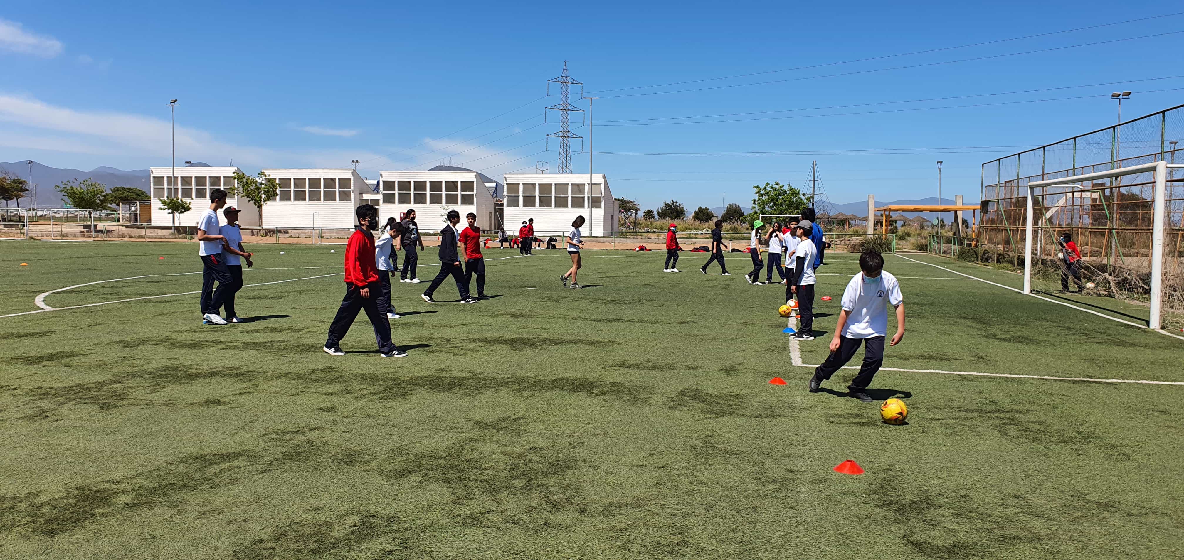 Durante los bloques de educación física, los alumnos de X pudieron ir al Complejo Deportivo Los Llanos ubicado en las compañías. Esta actividad coordinada por profesores de ed. física, inspectoras, y directivos, permitió desarrollar actividades de entrenamiento relacionadas con el fútbol.