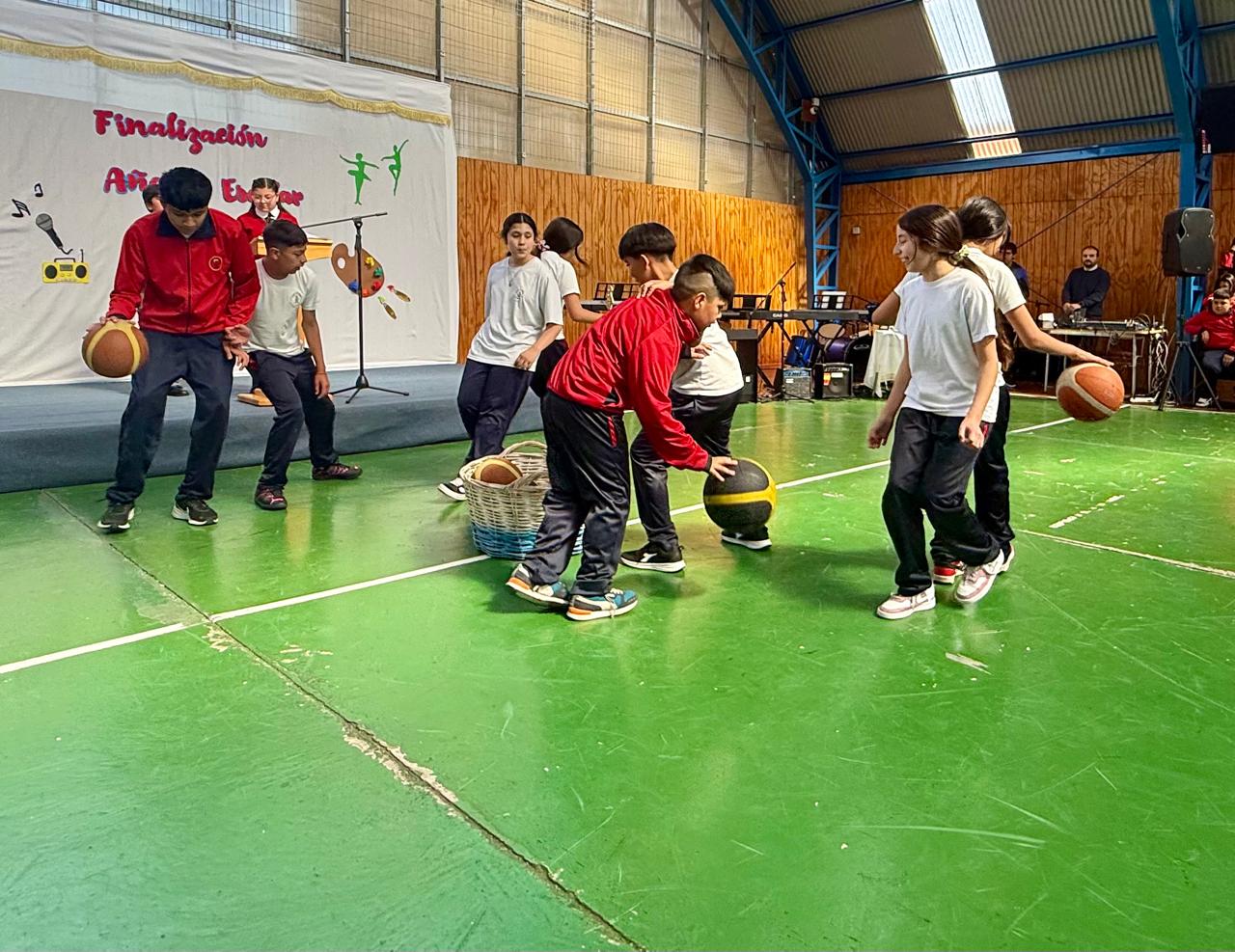 El deporte también estuvo presente mediante un esquema preparado por las academias de Voleibol y Básquetbol, dirigidas por los profesores Gabriel Concha y Valeria Rojas, quienes mostraron parte del trabajo formativo realizado durante el año. Más adelante, fue el turno de la Academia de Folclore de 2° ciclo, dirigida por Valeria Rojas y Josefa Barrios, quienes presentaron un cuadro artístico inspirado en culturas originarias de América, incluyendo elementos de Rapa Nui y Bolivia. La jornada continuó con la presentación de la Academia de Fútbol, guiada por los docentes Gabriel Concha, Jorge Rojas y Jhonatan Barrera, donde los estudiantes demostraron sus habilidades mediante esquemas deportivos.