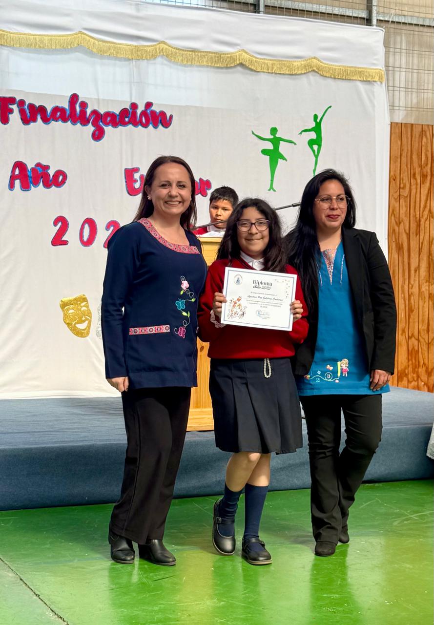 Nuestra directora Marcela Lorca Yáñez felicitó a los estudiantes por los logros alcanzados durante el año escolar, invitándolos a seguir adelante, a continuar creciendo y mejorando cada día, y también a disfrutar con alegría y responsabilidad las merecidas vacaciones que hoy comienzan.”