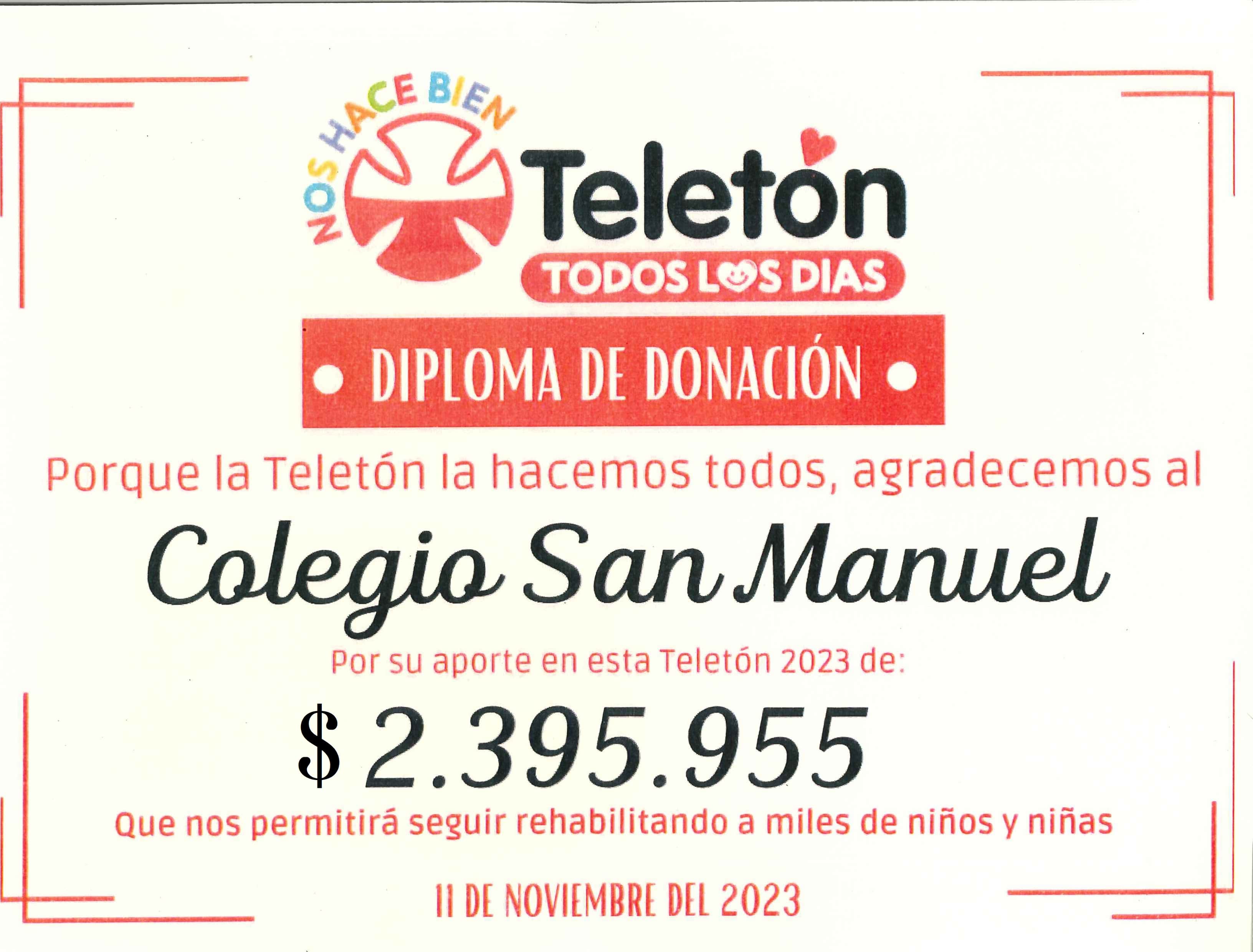 Los días viernes 10 y sábado 11 de noviembre, se llevó a cabo la Teletón 2023 en nuestro país. Nuevamente, se logró llegar a la meta como país y nuestro Colegio y Jardín San Manuel no estuvo ajeno a este hermoso evento.