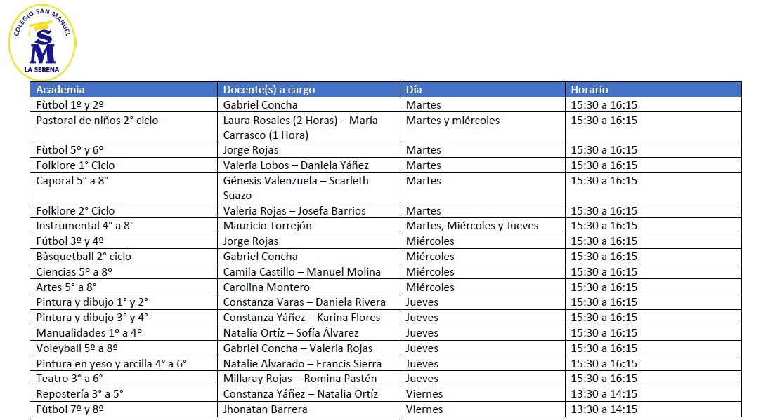 Ver Reglamento de Academias en el siguiente enlace: Reglamento de Academias Colegio San Manuel