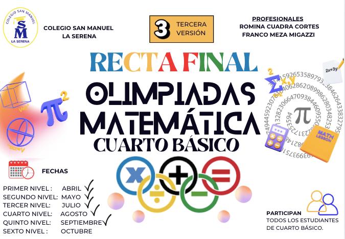 Durante el mes de septiembre, los estudiantes de Cuarto Básico participaron en el Quinto Nivel de las Olimpiadas de Matemática. Agradecemos enormemente su entusiasmo y determinación al momento de resolver cada problema matemático que se presenta, concentrándose y queriendo demostrar sus habilidades en esta área.