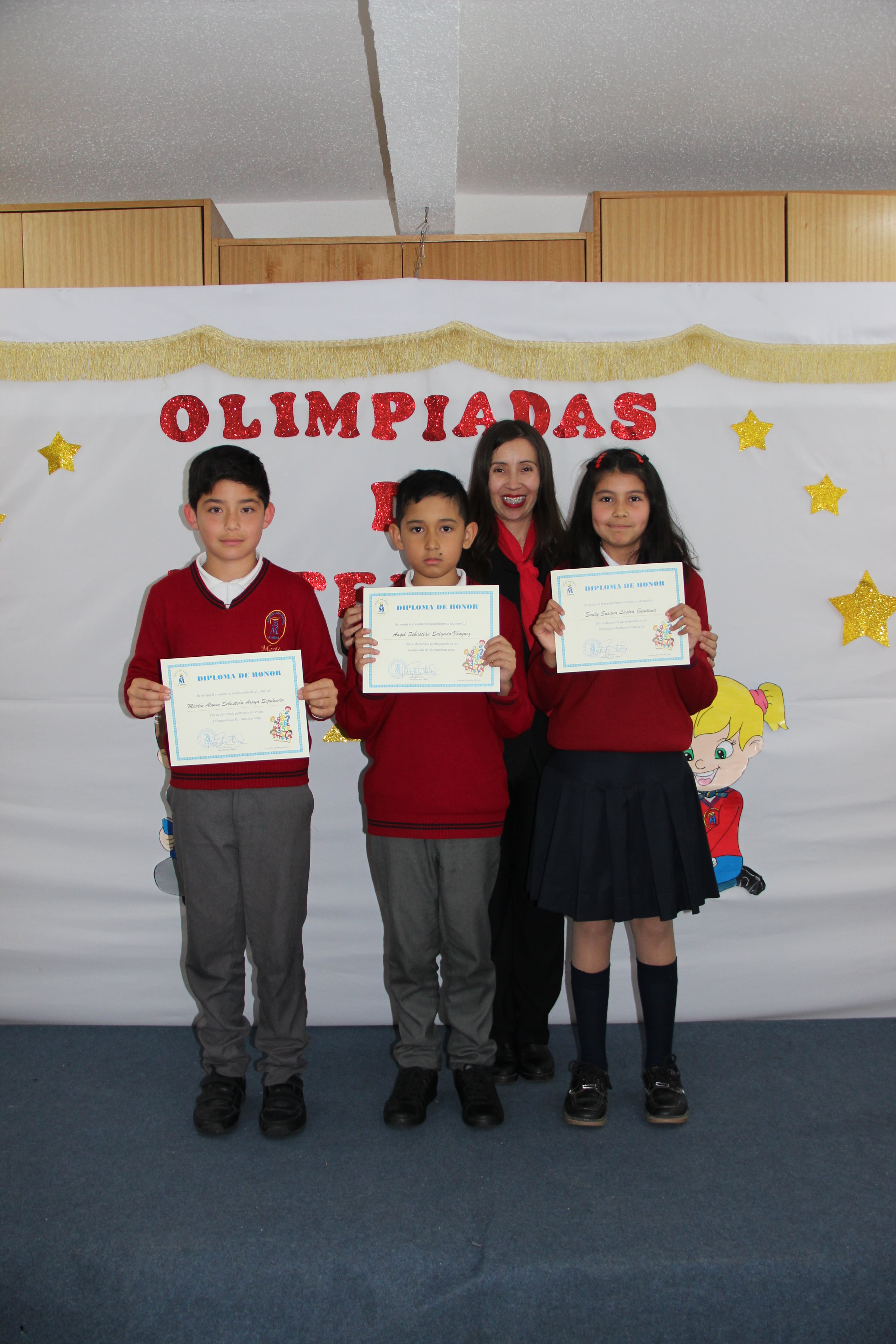 - 4 Básico B: Angel Salgado Vásquez, Martín Araya Sepúlveda y Emily Lastra Quintana.